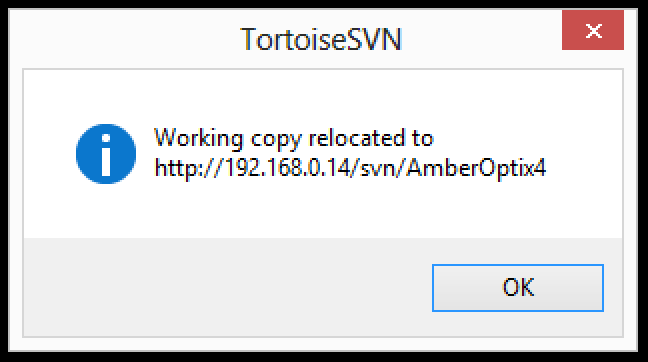 - Select TortoiseSVN | Relocate, enter the new location: