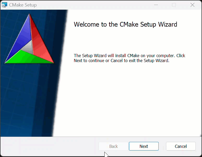 Install CMake V3.24.3. This will be used to generate a custom Visual Studio 2022 solution which can then be used to build the OpenCV libraries.