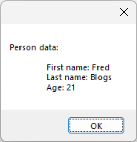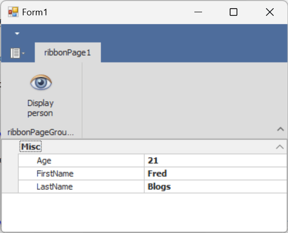 However, if I change the ‘Age’ property and click the ‘Display person’ button without first hitting the enter key, I see this: