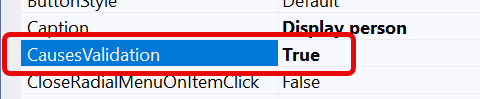 Changing the property to true causes the property grid’s validation to be performed which includes attempting to commit any live changes to the underlying object, the Person instance.