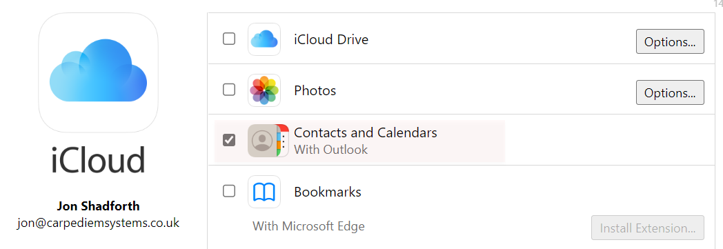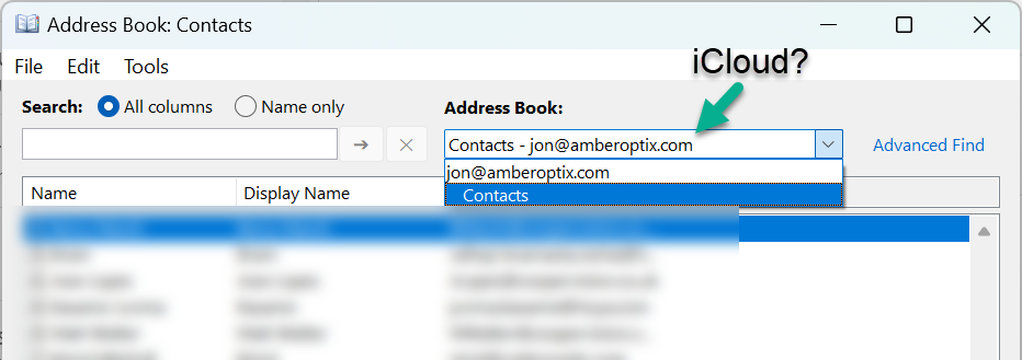 iCloud contacts not appearing in the Outlook address book after installing iCloud from the Microsoft Store and configuring it to synchronise contacts with Outlook .