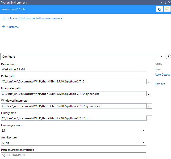 Finally I configured a new Python Environment: