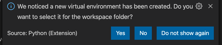 Visual Studio Code immediately offers to install the Python extension, select Install: